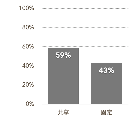 采用共享工位的公司的工位平均占用率为59%,使用时间明显更长,高于固定办公的数据(43%)。